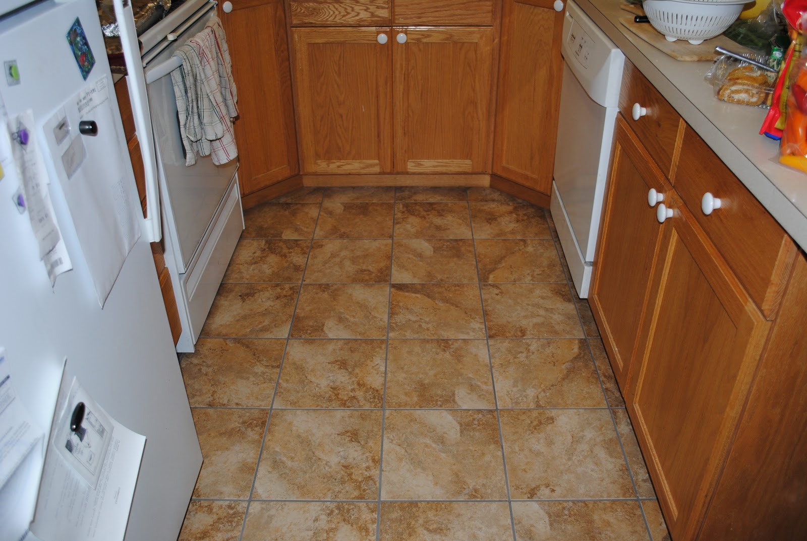 1. We replaced some of the carpet in our living room/kitchen area with tile.